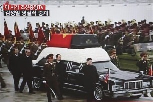 Al comienzo del recorrido Kim Jong-un, al que la locutora de la KCTV se refirió como "sucesor", acompañó a pie el coche fúnebre que portaba en el techo, sobre una cama de crisantemos blancos, el féretro negro de su padre envuelto en la bandera roja del Partido de los Trabajadores.
