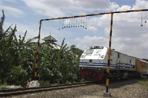 El nuevo método ideado por la compañía ferroviaria PT Kereta Api consiste en una estructura que atraviesa de un lado al otro el carril de la vía y de cuyo larguero penden unas cadenas con bolas macizas de cemento de tres kilos de peso que al paso del tren quedan a un pocos centímetros del techo de los vagones.