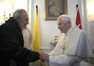 Catorce años después de que el líder de la Revolución cubana se entrevistase con Juan Pablo II durante la visita que efectuó a la isla, Fidel Castro estrechó la mano de otro papa, Benedicto XVI, de quien ya dijo: "Tiene la cara de un ángel".