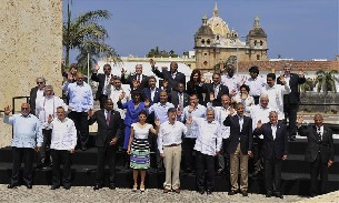 Santos informó de los resultados de la reunión de dos días clausurada hoy en Cartagena, que estuvo marcada por las diferencias entre América Latina y EE.UU. y Canadá ante temas como Cuba y Malvinas. El que la declaración final no abordara el conflicto entre Argentina y Reino Unido por las islas motivó que la presidenta argentina abandonase la Cumbre antes de su Clausura.