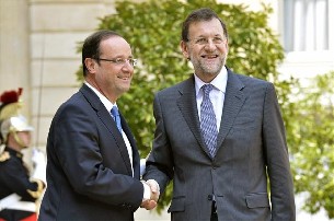 El jefe del Estado francés, François Hollande, y el presidente del Gobierno español, Mariano Rajoy, coincidieron en destacar la necesidad de tomar medidas que estimulen el crecimiento económico en la UE y refuercen el sistema bancario para hacer sostenible la deuda.