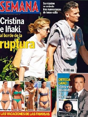 Como destaca la revista 'Semana' en su portada, Cristina e Iñaki están en el límite de su estabilidad matrimonial. Al parecer, la Infanta quiere volver a España porque no quiere estar lejos de su familia, pero Iñaki ni siquiera se lo plantea.