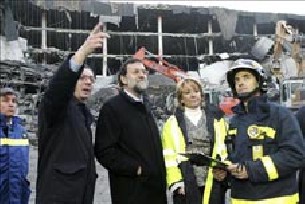 El presidente del PP, Mariano Rajoy, asegura que todos los españoles deben sentirse orgullosos del trabajo que realizan los bomberos, el SAMUR y las Fuerzas de Seguridad en las tareas de búsqueda de los dos desaparecidos y en las de desescombro en el aparcamiento de la T-4 del aeropuerto de Barajas. Rajoy visitó est miércoles la zona del atentado del pasado sábado, junto a la presidenta de la Comunidad de Madrid, Esperanza Aguirre, y el alcalde de la capital, Alberto Ruiz-Gallardón, y después se desplazaron a visitar a los familiares de los dos ciudadanos ecuatorianos desaparecidos en el hotel en el que están alojados. El presidente popular comentó que los bomberos y la Policía Científica les aseguraron que están trabajando con gran esfuerzo para localizar a los dos desaparecidos tras la explosión de una furgoneta bomba el pasado sábado. Dijo también que quería transmitir a los familiares de dichos desaparecidos su pesar y expresó su deseo de que en ?estos momentos de incertidumbre tengan el cariño de los españoles?.