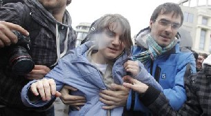 Yekaterina Samutsevich, la integrante del grupo ruso de punk Pussy Riot que ha recuperado su libertad tras haber sido condenada a dos años de cárcel junto a otras dos compañeras por realizar un acto de protesta contra el presidente Vladimir Putin en la principal catedral ortodoxa de Moscú, ha afirmado que no van a abandonar su "protesta política".