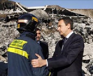 Desde lo que él mismo calificó como "el escenario de la destrucción", el presidente del Gobierno, José Luis Rodríguez Zapatero, proclamó que tras el atentado de ETA el pasado sábado "la energía y determinación" que tiene para "alcanzar la paz es hoy aún mayor". En una declaración de cuatro minutos desde la T4 de Barajas, y en la que no admitió preguntas, Zapatero no dio respuesta en ningún momento a las voces que le piden que sea él mismo el que dé por roto el proceso de paz. Un proceso al que el presidente no hizo referencia en ningún momento, y se limitó a proclamar que "nada ni nadie" detendrá el derecho de los españoles a tener "unas vidas sin bombas". "He querido estar aquí para expresar mi testimonio de gratitud a todas las personas que desde le día 30 llevan trabajando con el mejor afán", con este mensaje destinado a los efectivos del Cuerpo de Bomberos, el SAMUR, la Policía y trabajadores de aeropuerto comenzó Zapatero su comparecencia. Gratitud que extendió "a todos aquellos que han mostrado solidaridad y apoyo a España y al Gobierno de España, a las instituciones de este país tras el atentado". Desde "el escenario de la destrucción" Zapatero realizó, tras el atentado del sábado, una auténtica declaración de intenciones de cara al futuro: "La energía y determinación que tengo para ver el fin de la violencia, para alcanzar la paz es aún mayor". Además, aseguró que "nada ni nadie va a detener el derecho de los españoles a que nuestras vidas sean unas vidas sin bombas y sin violencia". "Y tengo el firme convencimiento de que lo vamos a conseguir", sentenció. Y en esta dura y difícil lucha, el presidente prometió que va poner "lo mejor" de sí mismo y toda su "determinación y toda la fuerza democrática que los ciudadanos me dieron en su día en las urnas". También aseguró que no le va a faltar "ni energía ni determinación para lograrlo" y mostró su deseo que para conseguir dicho objetivo pueda contar, "como quieren los españoles, con el concurso de todos los ciudadanos y de todas las fuerzas políticas". "El peor de los caminos posibles" "Quiero afirmar una vez más que ETA ha elegido el peor de los caminos posibles, nada va a conseguir, a nadie va intimidar la democracia no se intimida las instituciones democráticas no se intimidan y mucho menos el Gobierno", aseguró el presidente que también insistió en que los españoles saben que será "una batalla dura", pero afirmó que "también saben que cuentan con la más firme determinación del Estado de Derecho para ver el fin de la violencia". Relató que durante estos días han sido "numerosos" los gobiernos europeos que han expresado su apoyo y, "lo que es más importante", numerosos ciudadanos. "Ciudadanos españoles que saben bien que mal enfrentamos que una vez más han dado muestras de madurez ante un gravísimo atentado", afirmó Zapatero. El presidente señaló que con su presencia en Barajas -que llega cinco días después del atentado- quiso comprobar "personal y directamente" los efectos destructores del "vil atentado" y aseguró que "la Justicia se hará cargo de los autores de esta barbarie" que ha costado "casi con seguridad dos vidas humanas" y que ha provocado una "destrucción muy notable". "Esas son las reglas del Estado de Derecho, de la democracia y de la ley. Y la justicia es un camino fundamental para la paz y para el fin de la violencia", sentenció.