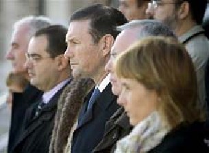 Centenares de ciudadanos, miembros del Gobierno Vasco encabezados por el lehendakari y cargos políticos y de la Judicatura se concentraron frente a las instituciones vascas para repudiar el atentado de ETA del sábado y solidarizarse con la familia de Carlos Alonso Palate. Las concentraciones, que se desarrollaron en silencio durante cinco o quince minutos, fueron convocadas al mediodía por el Gobierno Vasco y la Asociación de Municipios Vascos -EUDEL- tras localizarse ayer entre los escombros del aparcamiento de Barajas el cuerpo sin vida de Carlos Alonso Palate, uno de los dos ecuatorianos desaparecidos tras el atentado. Durante estos actos también se expresó la solidaridad con la familia de Diego Armando Estacio, el otro ecuatoriano desaparecido cuyo cuerpo aún no ha sido localizado. En Vitoria, el lehendakari, Juan José Ibarretxe, la portavoz del Ejecutivo autonómico, Miren Azkarate, y consejeros del tripartito que integra el Ejecutivo Vasco se concentraron frente a la sede del Gobierno Vasco acompañados de unos doscientos trabajadores. También en la capital alavesa un centenar de personas participaron en la plaza de España en la concentración convocada por EUDEL a la que asistieron representantes de todos los grupos políticos, excepto de la izquierda abertzale. Entre otros, estuvieron el delegado del Gobierno, Paulino Luesma, el alcalde de Vitoria, Alfonso Alonso, y ediles nacionalistas como Mikel Martínez (PNV), o Antxon Belekortu (EA). Otra concentración se realizó delante del Parlamento vasco, encabezada por su presidenta, Izaskun Bilbao. Estuvieron presentes una decena de parlamentarios, entre los que estaban Carmelo Barrio (PP), Xabier Aguirre (PNV) o Jesús Loza (PSE). En Bilbao, el diputado general de Vizcaya, José Luis Bilbao, encabezó la concentración frente al Palacio Foral junto a varios centenares de ciudadanos y personalidades como Juan María Atutxa y el secretario general de la UGT de Euskadi, Dámaso Casado. En esta protesta participó también Neisser Trujillo, presidente de la asociación de inmigrantes Nuevo Ciudadano, quien leyó un comunicado de condena del atentado, "realizado -dijo- por personas enajenadas que se encuentran fuera de la realidad y que desconocen la propia sociedad vasca". Magistrados del Tribunal Superior de Justicia del País Vasco, entre ellos su presidente, Fernando Ruiz Piñeiro, y la presidenta de la Audiencia de Vizcaya, Ana Iracheta, también guardaron cinco minutos de silencio frente al Palacio de Justicia de Bilbao. En este lugar también estuvo el cónsul de Ecuador en Bilbao, Pablo Buitrón Andrade, quien agradeció las muestras de condolencia y de solidaridad expresadas. Cerca de allí, la Ejecutiva del PNV, encabezada por su presidente, Josu Jon Imaz, se concentró ante la sede del partido, junto a un centenar de personas. En San Sebastián, al acto de protesta que tuvo lugar ante el Consistorio asistieron más de un centenar de personas, entre las que se encontraban los miembros de la corporación donostiarra con el alcalde Odón Elorza a la cabeza, el secretario general de los socialistas guipuzcoanos, Miguel Buen, el Ararteko, Iñigo Lamarca, y la directora de Atención a las Víctimas del Gobierno Vasco, Maixabel Lasa. La concentración ante la Diputación de Guipúzcoa estuvo presidida por el diputado general de Guipúzcoa, Joxe Joan González de Txabarri, y la mayoría de diputados forales, representantes del PNV como el presidente en Guipúzcoa, Joseba Egibar y dirigentes de EA.