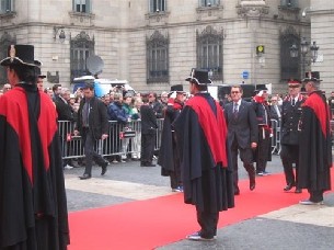 Entre los invitados, el ministro de Hacienda, Cristóbal Montoro; la delegada del Gobierno en Cataluña, Llanos de Luna; los expresidentes de la Generalitat Jordi Pujol y José Montilla; los presidentes de la Diputación de Barcelona, Salvador Esteve; de la Diputación de Lleida, Joan Reñé; y el alcalde de Barcelona, Xavier Trias.