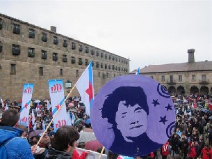 Miles de personas convocadas por la plataforma Queremos Galego han recorrido este viernes, durante más de dos horas, las calles de Santiago de Compostela para mostrar su defensa de la lengua gallega y expresar su "enérgico rechazo" a la política lingüística llevada a cabo por la Xunta de Galicia. Bajo el lema Non queremos ser estranxeiros na propia patria. Queremos galego!, la marcha, que cada año se celebra con motivo del día das Letras Galegas, ha partido pasadas las 12.15 horas de la Alameda, en donde el presidente de A Mesa y portavoz de la plataforma, Carlos Callón, ha advertido al presidente de la Xunta, Alberto Núñez Feijóo, que los ciudadanos gallegos no están dispuestos "a renunciar a su lengua". "Tenemos que lamentar, una vez más, que quien debería ser el defensor número uno de nuestra lengua, Alberto Núñez Feijóo, continúe siendo su enemigo número uno", ha criticado Callón antes de poner como ejemplos de sus políticas "agresivas" que el gallego en los medios de comunicación "esté en el nivel más bajo de los últimos 25 años" o que "las escuelas infantiles de las ciudades gallegas excluyan el gallego en el 96 por ciento". Precisamente, en la multitudinaria marcha en la que los manifestantes caminaron bajo la lluvia, una de las consignas más repetidas ha sido Nas aulas da Galiza, en Galego --en las aulas de Galicia, en gallego. Además, los participantes también han entonado Aínda que se molle, o galego non encolle --Aunque se moje, el gallego no encoge-- o Galegos somos, galegos seremos e por españois nunca pasaremos --Gallegos somos, gallegos seremos y por españoles nunca pasaremos--. PRESENCIA POLÍTICA Y CULTURAL Durante el recorrido, numerosos manifestantes ha portado narices rojas de payaso en recuerdo del autor al que este año se dedica el Día das Letras Galegas, Roberto Vidal Bolaño, entre los que se encontraban diversos miembros de la cultura gallega, como la actriz Mónica Caamaño, el actor Ernesto Chao, el presidente de la Asociación de Escritores en Lingua Galega, Cesáreo Sánchez o la artista Mercedes Peón. Asimismo, han acudido a la marcha representantes de los tres grupos políticos de la oposición, como el portavoz parlamentario del PSdeG, Abel Losada, acompañado por los diputados Francisco Caamaño, Carmen Gallego o Laura Seara. El portavoz nacional del BNG, Xavier Vence, junto al secretario de Organización, Bieito Lobeira, y los diputados Francisco Jorquera, Carmen Adán o Montse Prado. Así como el portavoz de AGE, Xosé Manuel Beiras, Antón Sánchez o Martiño Noriega. En declaraciones a los medios de comunicación, Abel Losada ha destacado que, "en el 50 aniversario del Día das Letras Galegas, los socialistas gallegos quieren mostrar su apoyo al gallego, al entender que es un patrimonio de todos". Así, ha lamentado que "el consenso que progresivamente se fue construyendo a través de la Ley de Normalización Lingüística esté siendo destruido por la Xunta que, de forma unilateral, antepone su ideología absolutamente excluyente a la unión de toda Galicia entorno a un patrimonio fundamental". Por su parte, Xavier Vence ha reclamado la necesidad de que el gallego "tenga un papel digno en la sociedad y de que ocupe el lugar que le corresponde como idioma propio de un país". "Reivindicamos que las instituciones, empezando por la Xunta, cumplan con las obligaciones estatutarias que tienen para poner el gallego en el lugar que le corresponde", ha expresado Vence. Asimismo, el dirigente nacionalista ha exigido al Gobierno gallego que "de un paso atrás en su estrategia de agresión del gallego" con la retirada del decreto del plurilingüismo y ha criticado la discriminación llevada a cabo por la Xunta el reparto de ayudas para la promoción del idioma en los medios de comunicación al recaer "en todos menos en los que escriben en gallego". También en declaraciones a los periodistas, el líder de Alternativa Galega de Esquerda, Xosé Manuel Beiras, ha denunciado que el de Galicia "es el único gobierno en la historia que emprende una campaña de analfabetización en el propio idioma del país, algo que no pasaba ni en el África subsahariana con los idiomas nativos". "No es política lingüística, es etnocidio, lingüísticidio, que lean un poco y se enteren de lo que están haciendo, que es un crimen contra la cultura y los ciudadanos", ha manifestado Beiras en relación a los miembros del Ejecutivo autonómico. ACTO EN LA PRAZA DA QUINTANA Tras más de dos horas de recorrido, la marcha secundada por miles de personas ha llegado a la Praza da Quintana por un recorrido distinto al habitual que, según ha indicado la organización, se debió a la "prohibición de la subdelegación del Gobierno de atravesar la Rúa Nova" en donde se ha celebrado el plenario extraordinario de la Real Academia Galega con motivo del Día das Letras Galegas y al que han asistido, entre otras autoridades, el presidente de la Xunta, Alberto Núñez Feijóo. Una vez en la Quintana, llena por los manifestantes y en la que reinaba un ambiente festivo, la actriz Isabel Risco ha sido la encargada de conducir un acto en el que la figura de Vidal Bolaño ha estado muy presente y el que ha contado con actuaciones musicales del grupo de cantareiros Maghúa o la interpretación de la 'Alborada' de Rosalía por el gaiteiro Víctor Agulló, pieza que ha dado paso a la lectura del manifiesto. "Nuestro idioma, el gallego, es la base fundamental sobre la que nos sustentamos como pueblo. Si dejamos que esa base se estrague, todo cuanto se apoya en ella, nuestra esencia como gallegos y gallegas, tremerá como la tierra en un seísmo devastador", ha reivindicado la coordinadora de Queremos Galego, Susana Méndez. En este sentido, ha señalado que hay "motivos suficientes" para movilizarse en este 17 de mayo, como la existencia de "un gobierno que en lugar promocionar y proyectar la lengua propia de Galicia, hace justamente lo contrario" o "un marco jurídico