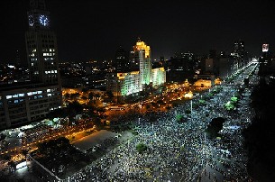En Río de Janeiro, unas 300.000 personas --según la Policía Militar-- han marchado desde Cinelândia hasta el Ayuntamiento, en la mayor manifestación que se ha celebrado hasta ahora por la convocatoria de los ya bautizados como 'indignados' brasileños.