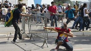 Los choques comenzaron después de que grupos de manifestantes atacasen a los agentes con piedras y artefactos incendiarios e intentasen derribar una de las barreras levantadas por la Policía Militar, que durante todo el día ha protegido las inmediaciones del estadio Arena Castelao. Los policías han respondido lanzando pelotas de goma y gases lacrimógenos.