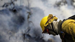 En las labores para intentar controlar las llamas y que no lleguen a afectar a casas ni al enclave próximo del Monte Pindo trabajan un técnico, seis agentes, 12 brigadas y seis motobombas.