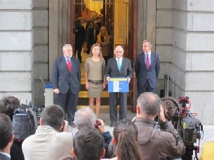 Toda la comitiva pasará después a la Sala de Pasos Perdidos, donde Montoro entregará el código QR, el 'pen drive' y los tomos que recogen el detalle de las cuentas públicas Posada, en presencia de otros responsables del área de Presupuestos, como el presidente de la comisión parlamentaria, el socialista Alfonso Guerra.