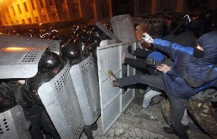 Entre los heridos hay personas con traumatismos y afectados por quemaduras químicas en los ojos. Las autoridades municipales informan de que entre los heridos hay tanto manifestantes como policías. Unos 20.000 manifestantes de la oposición continúan concentrados en la plaza de la Independencia, epicentro de las protestas contra el presidente ucraniano, Viktor Yanukovich.