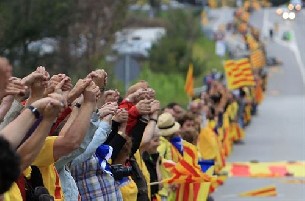 El anuario fotográfico --disponible en 'graphics.wsj.com/Photos-of-the-Year/2013'-- muestra un tramo de la Vía Catalana, la cadena humana que cruzó Cataluña de norte a sur el pasado 11 de septiembre, localizada en el Pertús, al sur de Francia, en una imagen firmada por Raymond Roig, que es la que ha obtenido mayor puntuación de todas.