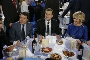 Rajoy y González han coincidido en la noche de este miércoles en la tradicional cena que el PP de Madrid celebra por Navidad y donde ambos se han sentado juntos en la mesa. Al otro lado del presidente del Gobierno se encontraba la presidenta del PP de Madrid, Esperanza Aguirre; la alcaldesa de Madrid, Ana Botella; el vicesecretario de Organización del PP, Carlos Floriano; y la delegada del Gobierno en Madrid, Cristina Cifuentes.
