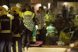 Los Bomberos han enviado medio centenar de efectivos y ocho vehículos a las inmediaciones del Apollo, de donde podía verse salir a personas cubiertas de polvo y con sangre. Unas 25 ambulancias también se han desplazado a la zona.