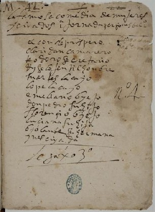 El manuscrito, con la firma Mss/16915, entró en la Biblioteca Nacional en 1886 como parte de la compra de la biblioteca de Osuna, tiene 56 páginas y está copiado por una sola persona con letra del siglo XVII, que enumera los folios de manera independiente en cada acto.