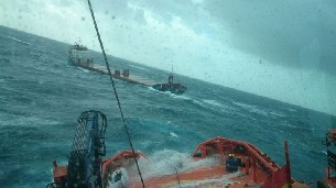A las 15,20 horas del martes el 'Sar Gavia' hizo firme por primera vez el remolque del mercante 'Abis Calais', de bandera holandesa y que transporta una carga de 5.000 toneladas de pellet de madera. Había salido del puerto luso de Leixoes con destino al de Hull, en Reino Unido.