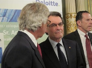 Al finalizar el discurso de Mas y tomar la palabra para dar la despedida el presidente de APD Zona Mediterránea, Emilio Cuatrecasas, un empresario del público ha increpado al abogado diciéndole que no interviniese porque ya había hablado el presidente de la Generalitat.