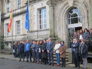 Sobre medio centenar de personas ha secundado este miércoles la concentración convocada por el Ayuntamiento de Lugo, donde prácticamente participó toda la corporación municipal, además del subdelegado del Gobierno y el secretario xeral de los socialistas gallegos, José Ramón Gómez Besteiro, entre otros.