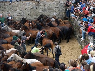 curros en la Rapa das Bestas de Sabucedo. El primero de ellos está señalado