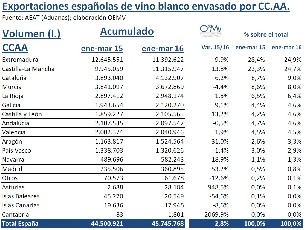 deste exercicio exportáronse 2,1 millóns de litros de viño branco envasado cun