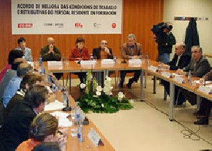 Mejoras laborales, retributivas y sociales. Así se resume el acuerdo firmado por la conselleira de Sanidade, María José Rubio, y representantes de las fuerzas sindicales respecto a la situación laboral del personal residente en formación, que engloba a médicos, psicólogos y profesionales de enfermería (suman 1.077 personas).