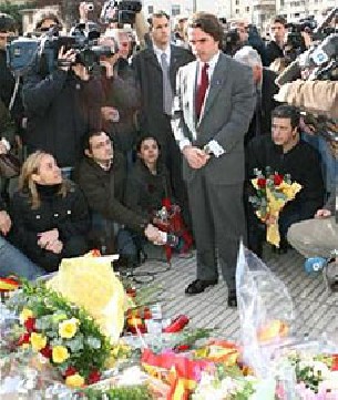 El ex presidente del Gobierno José María Aznar depositó un ramo de rosas en la madrileña plaza de la República Dominicana para rendir homenaje a las doce víctimas de ETA asesinadas en ella el 14 de julio de 1986, en un atentado en el que participó el etarra José Ignacio de Juana Chaos. A las 16:30 de la tarde, el ex presidente del Gobierno llegó a la plaza de la República Dominicana donde fue recibido con aplausos y gritos de "¡presidente, presidente!" por un grupo de unos doscientos ciudadanos. Tras saludar a algunas de las personas allí congregadas, Aznar se dispuso a depositar un ramo con veinticinco rosas -doce amarillas, doce rojas y una blanca- en uno de los parterres de la glorieta en el que, desde el lunes, los ciudadanos dejan flores y velas en homenaje espontáneo a los doce guardias civiles que ETA asesinó en ese lugar. Entre gritos de "¡Viva la Guardia Civil!" el ex presidente colocó en el centro del jardín, que se encontraba cubierto completamente de flores y velas, un ramo de flores cubierto con un lazo con los colores de la bandera española. Tras ello, Aznar guardó unos instantes de silencio frente a las flores que había depositado, que también fueron respetados por la concurrencia, y se dirigió de nuevo al vehículo en que llegó tras declinar hacer ningún tipo de declaración a los periodistas allí presentes. Las personas congregadas despidieron al ex presidente del Gobierno con exclamaciones de "¡España unida jamás será vencida!" y le pidieron que no abandonara tan pronto el lugar con gritos de "¡que vuelva, que vuelva!". Desde el pasado lunes, cientos de personas se han acercado hasta la plaza de la República Dominicana en Madrid, a pesar del viento y la lluvia, para colocar multitud de ramos de flores y velas en memoria de los doce guardias civiles. El parterre en el que depositó su ramo Aznar se encuentra repleto de banderas españolas, velas y rosas rojas y amarillas que se amontonan sobre el césped. En él también se pueden ver doce cruces blancas, peluches y algunos mensajes dirigidos a honrar la memoria de las víctimas, entre los que sobresalen "Caídos por España. Presentes" o "No os olvidamos". De las decenas de carteles y cartulinas improvisadas a mano o mecanografiadas que se refieren a la política antiterrorista del Gobierno, la mayoría están dirigidas al presidente, José Luis Rodríguez Zapatero, y al ministro del Interior, Alfredo Pérez Rubalcaba. "Las 25 víctimas ya no comen. ZP no negocies con nuestros muertos", "El terrorismo está en la Moncloa", "Por el cumplimiento íntegro de las penas" o "ZP: Si todos los presos dejan de comer, ¿los vas a soltar?", son algunos de los lemas reproducidos. Asimismo se ha habilitado un tablón en el que los ciudadanos pueden firmar y escribir recordatorios en memoria de las víctimas. "Es muy dura la cárcel, pero más duro es estar sin los seres queridos", "¡Fuera los traidores!" y "¡Viva la Guardia Civil", son varios mensajes que se podían ver a primera hora de esta tarde.