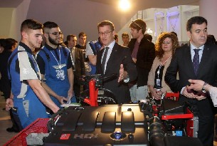 Así mesmo, Feijóo destacou algunhas das iniciativas presentadas neste segundo congreso FP Innova Galicia, entre un total de 40, nas que participaron 23 centros educativos e 30 empresas, como un simulador de envorcado de vehículos e de rescate das vítimas; unha plataforma para que as persoas con problemas de mobilidade poidan desprazarse mellor por áreas comerciais; unha iniciativa de deseño e construción de robots para competicións; ou un proxecto de investigación sobre os usos culinarios e turísticos da camelia.
