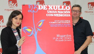 Eva Solla, coordinadora nacional de Esquerda Unida e Xabier Ron, membro da executiva de Esquerda Unida, presentaron en rolda de prensa o acto do vindeiro 25 de Xullo, unha homenaxe ao alcalde republicano mugardés Juan Prieto Balsa fusilado polos golpistas na noite do 24 de xullo de 1936 á beira do río Ombre, na localidade de Pontedeume.