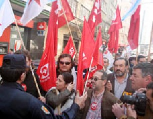 La Policía Nacional rechazó esta solicitud e inició una carga de empujones con el objetivo de trasladar a los trabajadores, en resistencia pacífica, hasta la acera. Al no conseguirlo, los antidisturbios comenzaron a atizar con sus porras a los manifestantes que respondían al grito de ?somos trabajadores, no somos terroristas?.