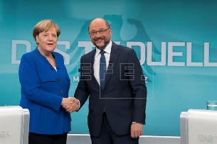 A tres semanas de las elecciones generales, la líder conservadora y el candidato socialdemócrata confrontaron sus posiciones ante sus compatriotas en un debate de 90 minutos centrado en la acogida de refugiados, como tema dominante, y con escaso espacio para políticas sociales, terreno en que teóricamente habría favorecido a Schulz. EFE