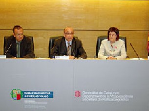 Los Gobiernos vasco, catalán y gallego han suscrito un acuerdo de colaboración para reclamar la protección y uso de las lenguas oficiales dentro del Estado español y de la Unión Europea. El acuerdo, el primero de estas características, ha sido suscrito en Bilbao por un período de tres años por el viceconsejero de Política Lingüística del Gobierno vasco, Patxi Baztarrika, y los secretarios de la Generalitat de Catalunya y la Xunta de Galicia, Miquel Pueyo y Marisol López, respectivamente. Según ha explicado Baztarrika, con este acuerdo los tres Ejecutivos se comprometen a colaborar en los procesos de normalización lingüística y a contribuir a que las instituciones centrales del Estado "dispensen al euskera, catalán y gallego un tratamiento más respetuoso, más digno, más favorable a su uso, tal y como corresponde a un Estado, que siendo plurilingüe, asume de verdad el plurilingüismo". En este sentido, ha criticado que aunque la sociedad española es plurilingüe, las instituciones del Estado actúan cono si ésta fuese monolingüe. "A las lenguas diferentes al castellano se sigue manteniéndolas ausentes de las instituciones del Estado, a pesar de que la obligación de los poderes públicos de respetarlas y fomentarlas emana de la propia Constitución", ha denunciado. El responsable de política lingüística vasca ha censurado que las lenguas propias no tienen un uso normalizado, por lo que ha instado al Gobierno español a asumir "de manera inequívoca" su carácter plurilingüe e incorpore las tres lenguas en las instituciones legislativas y en la justicia, así como en las empresas públicas como Renfe o Correos, en los medios de comunicación públicos de titularidad estatal y en el sistema educativo. Baztarrika ha advertido de que este proceso "no va contra nada ni contra nadie, en absoluto es una lucha contra el castellano". Así, ha insistido en que el protocolo suscrito sólo persigue la "igualdad social entre nuestras lenguas" desde la convicción de que éstas "no separan, sino que integran". "No es una cuestión de coexistencia entre lenguas en situación de desigualdad: se trata de una cuestión de convivencia real y efectiva. El respeto, el fomento y protección del desarrollo de las lenguas en este caso del catalán, el gallego y el euskera es una cuestión de principios democráticos y de compromiso con al riqueza y biodioversidad cultural", ha concluido. El secretario de la Generalitat, Miquel Pueyo, por su parte, ha calificado el acuerdo de "histórico" al recoger una batería de actuaciones que van a ser "muy ambiciosas para los años inmediatos" y permitir plasmar "nuestra condición irrenunciable de naciones europeas que también quieren ser escuchadas con su propia voz en el ámbito de esa construcción europea con la que históricamente tan comprometidos hemos estado". En la misma línea, su homóloga gallega, Marisol López, ha destacado el trabajo común que llevarán a cabo las tres comunidades para "impulsar y defender nuestras respectivas lenguas tanto en el marco estatal como en el ámbito de la UE". A su juicio, el protocolo brinda la oportunidad de trabajador conjuntamente para que en el marco de la UE "la adopción de posturas comunes y coordinadas redunde en un reconocimiento pleno de las tres lenguas que junto al castellano se hablan en el Estado español".
