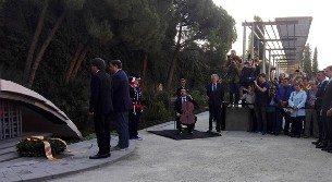 Puigdemont y todo el Govern han depositado esta mañana una corona de flores ante la tumba del presidente de la Generalitat republicana Lluís Companys coincidiendo con el 77 aniversario de su muerte. EFE | EP