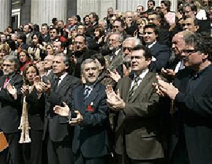 Un centenar de diputados de todos los grupos parlamentarios, salvo del PP, así como trabajadores del Congreso, guardaron cinco minutos de silencio en la escalinata del Palacio de las Cortes en repulsa por la guerra de Irak, cuando se cumple el cuarto aniversario del inicio de los combates. A la concentración se unieron la vicepresidenta primera de la Cámara Baja y diputada socialista, Carme Chacón; los portavoces del PSOE, Diego López Garrido, y de ERC, Joan Tardá, así como Gaspar Llamazares y Joan Herrera de IU-ICV.
