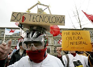 Más de un centenar de profesores y alumnos de educación no universitaria se manifestaron en Santiago contra la reducción de la carga horaria en la Enseñanza Secundaria Obligatoria (ESO) que aseguran que la Consellería de Educación impondrá en las materias de Tecnología, Música y Plástica. La protesta, organizada por CIG-Ensino, se inició a las once y media de la mañana, con una concentración en la Praza da Quintana, desde donde salieron los asistentes en dirección a la Consellería de Educación, en San Caetano. Los manifestantes reclamaron a la Administración que rectifique su posición al repecto y no reduzca en un 43 por ciento en la ESO la carga horaria en la materia de tecnología. Para las enseñanzas de Música y Plástica, el recorte se situará en un 40 por ciento. Esta medida fue calificada como "inaceptábel" por el secretario nacional de CIG-Ensino, Anxo Louzao, quien destacó que la enseñanza obligatoria, que tiene que ser completa y alcanzar a todas las ramas y ámbitos del saber, sufre de esta forma un importante recorte en las referidas áreas. Incidió además en el hecho de que las tres materias tendrán cada una carga horaria obligatoria menor que la religión, mientras la Administración educativa incrementa así mismo el 50 por ciento de la carga horaria de las enseñanzas mínimas en la educación para la ciudadanía.