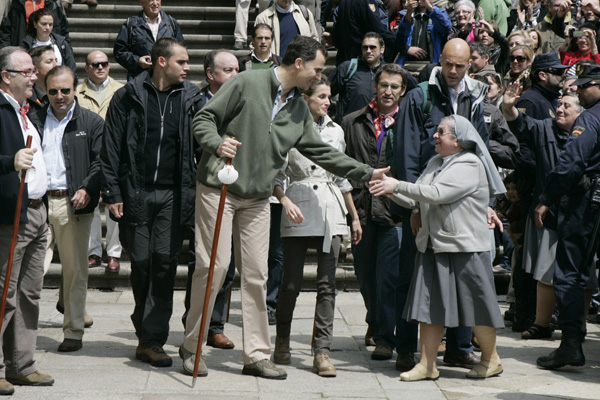 Los Príncipes, acompañados por Feijóo durante la caminata