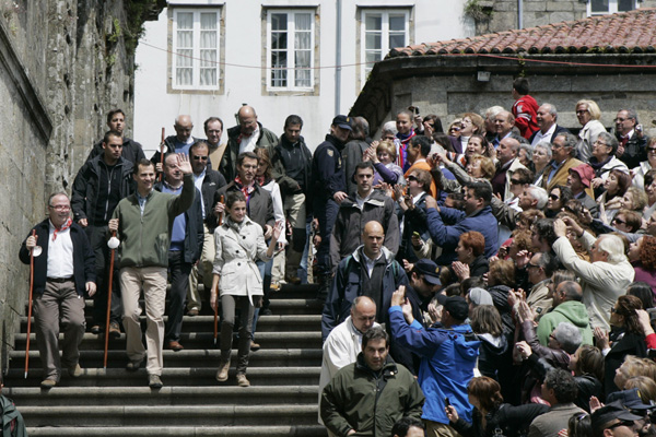 Los Príncipes saludan a los ciudadanos en Santiago