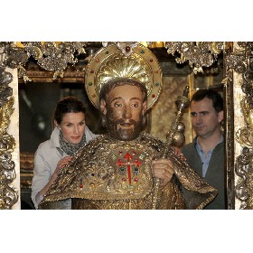 Feijóo saluda al Príncipe a su llegada a la Ermita de San Paio